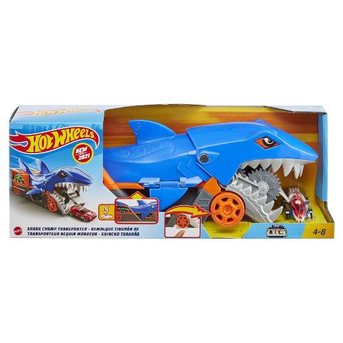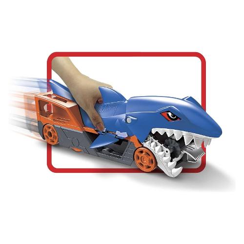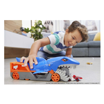 Questo trasportatore super alla moda ispirato a uno squalo raccoglie le macchine e le ripone nella pancia, un modo unico e divertente di trasportare e riporre i veicoli Hot Wheels. Questa versione più grande dell'iconica macchina Shark Bite Hot Wheels ha le caratteristiche riconoscibili di uno dei nemici preferito dai bambini, una rampa di uscita sul retro spara le auto verso la loro prossima avventura. Il veicolo Hot Wheels Trasportatore Squalo Divoratore include un veicolo Shark Bite Hot Wheels e può contenere fino ad altri 5 veicoli (macchinine aggiuntive in vendita separatamente). I bambini ameranno questo squalo mordi-tutto che inghiottisce le automobili, mentre i genitori ameranno questa maniera comoda di mettere a posto, discreto quando non in uso.