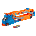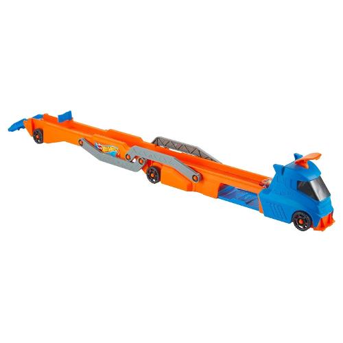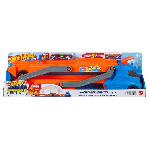 Carica le tue auto hot wheels preferite e guida attraverso hot wheels city con questo trasportatore con pista super velocità! Può contenere e conservare fino a 9 macchinine hot wheels in scala 1:64, perfette per averle sempre a portata di mano e pronte a gareggiare o per metterle in mostra. Estraendolo il pianale del camion, puoi trasformarlo in una pista più lunga, di circa 75 cm. La cabina del trasportatore funge anche da lanciatore per mandare le auto in velocità lungo la pista. La rampa all'estremità può essere collegata ad altri binari o utilizzata come piattaforma per eseguire acrobazie fantastiche. La confezione include 1 veicolo 1:64