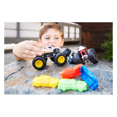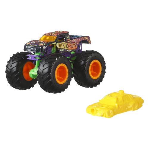 I monster truck di hot wheels® sono veicoli die-cast in scala 1:64 e sono i truck più competitii mai costruiti per le percorsi su tutti i tipi di terreno! Gareggiano in battaglie testa a testa con le loro ruote giganti! Ogni truck include una ruota collezionabile e la confezione fornisce le caratteristiche complete, che includono il nome, il tipo di truck, la forza, l'eccezionale attacco distruttivo e il motore giusto per sprigionare il divertimento e inventare storie sempre nuove! Ognuno venduto singolarmente e soggetto a disponibilità. I colori e le decorazioni possono variare.