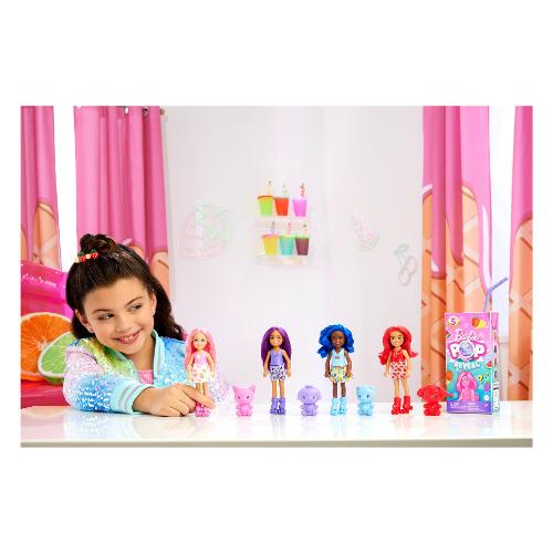 Le bambole barbie pop reveal chelsea offrono cinque sorprese sensoriali! Apri la parte superiore della confezione a forma di succo di frutta con la cannuccia per sentire una dei quattro profumi della serie frutta: limonata di fragole, punch di frutta, spremuta di anguria o spuma d'uva. Quale bambola troverai? Scopri una piccola bambola chelsea profumata, due sacchettini misteriosi e un cubetto di ghiaccio con una sorpresa all'interno: aprilo per scoprire i pattini a rotelle! Il cubetto di ghiaccio è riutilizzabile: aprilo e divertiti quante volte vuoi! Apri i sacchettini per trovare una gonna e un cucciolo interattivo, poi scopri altre sorprese con la trasformazione cambia colore sul viso della bambola chelsea. I bambini vorranno collezionarle tutte! Ogni bambola è in vendita separatamente, secondo disponibilità. Le bambole non possono reggersi in piedi da sole.