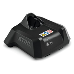Compatibile con la batteria as 2 di stihl. Con indicatore dello stato di funzionamento (led lampeggiante). Avvolgicavo con velcro. Montaggio a parete. Corrente di carica 2,0 ah