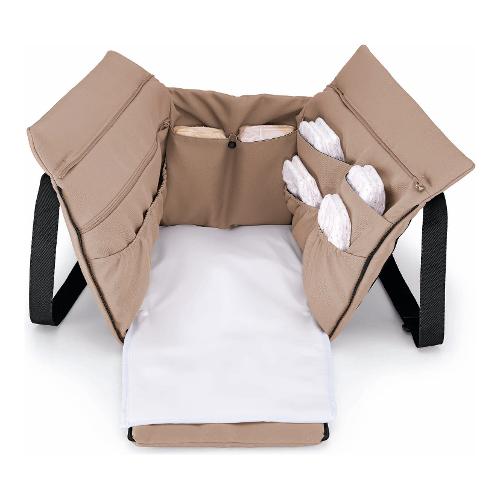 Capiente borsa alla moda, perfetta per andare ovunque. Dotata di pratiche tasche portaoggetti, tasca portatutto con chiusura a zip e fasciatoio removibile e facilmente lavabile. Pensata per garantire una soluzione pratica e igienica per il cambio del bambino in qualsiasi posto ti troverai. Basterà aprire le zip di uno dei lati corti e sdraiare il tuo bambino. Tutto l’occorrente sarà a portata di mano. Con tracolla regolabile e maniglie