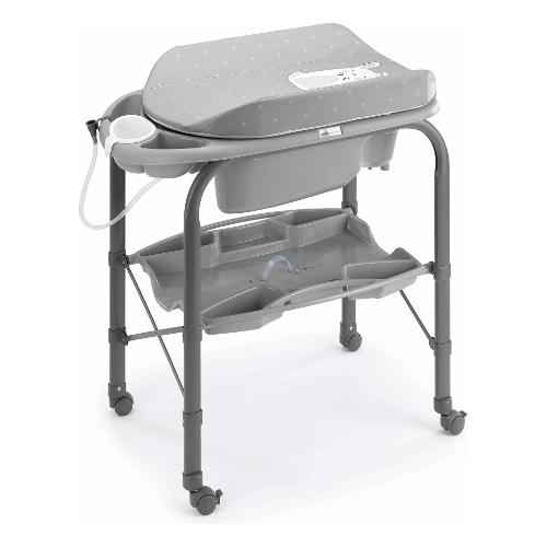 Made in italy, ideale per i bagni più piccoli, si chiude con una mano: morbido materassino con sistema anti-ribaltamento, include vaschetta Baby Bagno con 2 sedute anatomiche e antiscivolo (una inclinata per bimbi da 0 a 6 mesi e una seduta con braccioli per bimbi da 6 a 12 mesi); vani portasapone e pora spugnetta, doccino, tappo e tubo scarico dell'acqua, cassetto portaoggetti con porta flaconi, con 4 ruote di cui 2 con freno. Ideale per i bagni più piccoli, può essere posizionato sui sanitari.