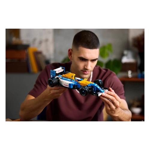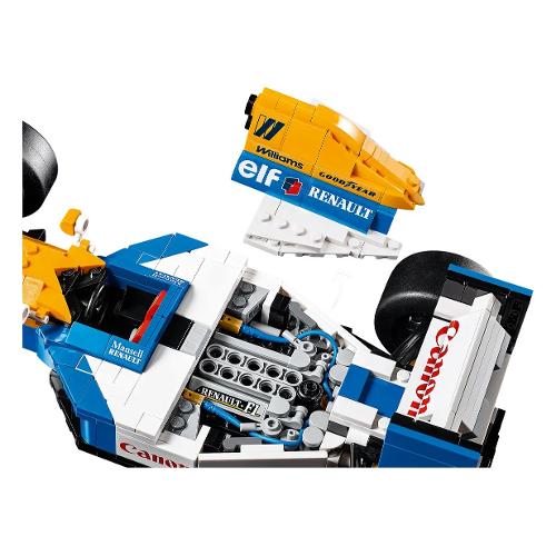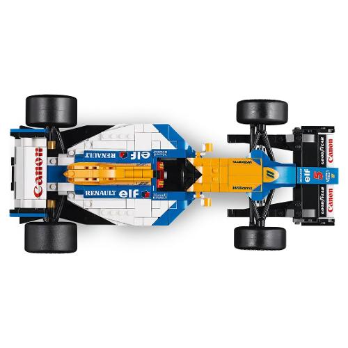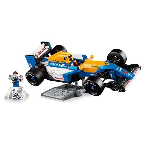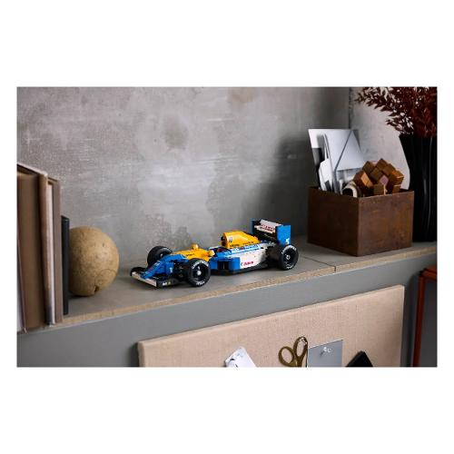 La williams fw14b lego icons è dotata di sterzo funzionante, larghi pneumatici slick posteriori con scritta goodyear stampata e motore dettagliato, oltre a un espositore con dettagli e statistiche della monoposto. La minifigure di nigel mansell è dotata di casco e un espositore in stile podio con una foto e citazione del leggendario pilota.