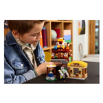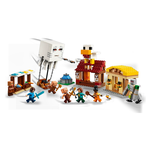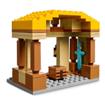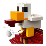 Il set presenta personaggi popolari del videogioco: steve, natalie, dawn, 2 piglin, un ghast-pallone, un abitante del villaggio, un pulcino e una figura snodabile del golem di ferro. Il pallone ha spazio per i piglin e incorpora uno shooter di dischi. Nel villaggio ci sono le bancarelle del mercato, il ristorante di pollo fritto di steve, la sua baracca di crafting e una fontana che i bambini possono far “esplodere” utilizzando una funzione integrata. Il tetto del ristorante è sormontato da un grande modello di pollo che include una divertente funzione di deposizione delle uova. Per il divertimento digitale, l’app lego builder consente ai bambini di ingrandire, ruotare i modelli in 3d e monitorare i loro progressi.