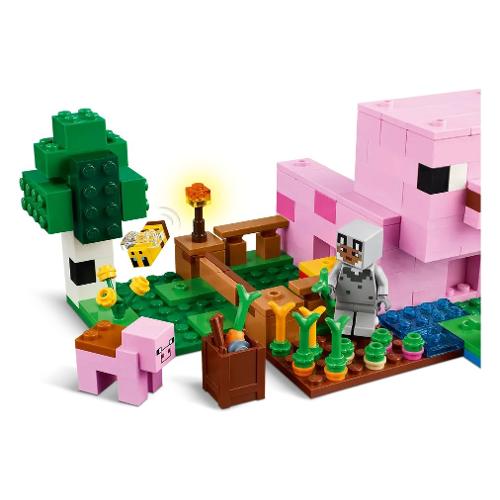 Ambientato nel bioma della foresta di minecraft, questo giocattolo creativo con casa costruibile include molti personaggi del popolare videogioco: un eroe con skin di lupo, un maialino, un’ape, un maiale adulto e un piglin zombificato. I bambini possono ricreare le azioni del gioco, come mettere la sella al maiale adulto e dondolare una carota davanti a lui per fare un giro nella casa e nel giardino a forma di maiale. C’è un appezzamento di terreno agricolo con patate e barbabietole da coltivare e un campo con un cancello per far passare il maialino. I bambini possono evitare il piglin zombificato che vuole rovinare il divertimento entrando nella casa, dove troveranno un letto, una libreria e un banco da lavoro per ispirare il gioco di fantasia. L’app lego® builder offre ai bambini tanto divertimento aggiuntivo, consentendo loro di utilizzare il proprio dispositivo per ingrandire e ruotare i modelli in 3d.