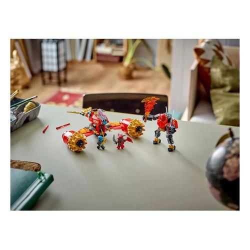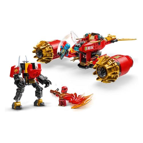 Questo set di gioco con veicolo ninja include 3 minifigure ninjago: kai armato con 2 spade katana di cristallo, nya con 2 spade katana d’oro e un malvagio guerriero dragoniano con la sua spada, così i bambini possono inscenare epiche battaglie.