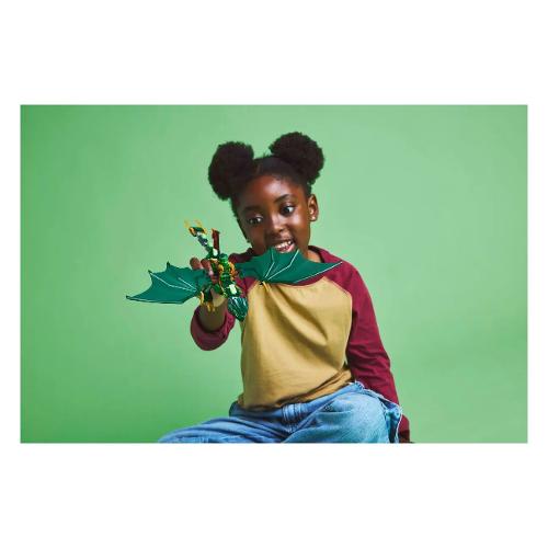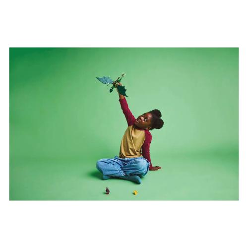I bambini e le bambine dai 6 anni in su possono librarsi in cielo per ricreare le scene della stagione 3 del programma tv ninjago® la rivolta dei draghi con il kit di costruzione giocattolo drago della foresta verde di lloyd (71829). Il set contiene un incredibile drago giocattolo con coda, collo, gambe snodabili, grandi ali e mani, più una sella per minifigure che può essere montata sul suo dorso.