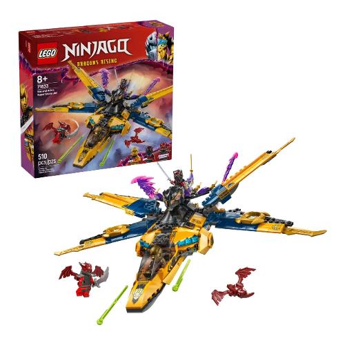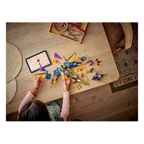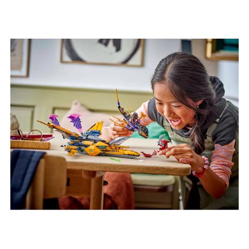 I bambini e le bambine dagli 8 anni in su possono ricreare le scene della stagione 3 del programma tv ninjago® la rivolta dei draghi con il jet super storm di ras e arin (71833). Contenente un fantastico jet giocattolo con drone staccabile e capsula di salvataggio, oltre alle minifigure di arin, ras e del guerriero dragoniano e un modello di mini drago, questo incredibile set costruibile lego® include tutto ciò di cui i bambini hanno bisogno per godersi innumerevoli ore di gioco di ruolo.