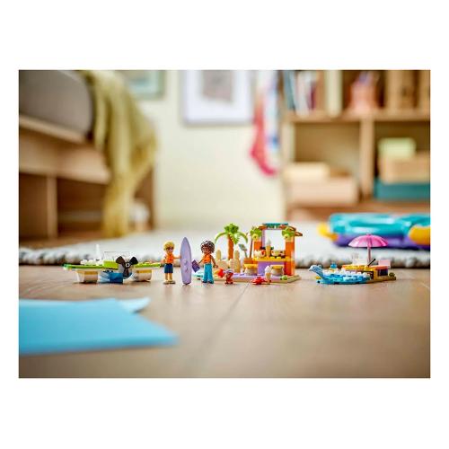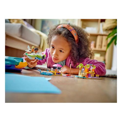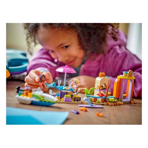 Questo set per il gioco di finzione ha tutto ciò di cui i bambini hanno bisogno per costruire un idrovolante con elica funzionante, un’area relax con tavola da surf e un bar sulla spiaggia con castello di sabbia, posti a sedere e accessori gelato. I modelli possono essere ricostruiti in un motoscafo giocattolo, un’area salotto all’aperto e una pizzeria con forno per pizza. Il giocattolo costruibile contiene 2 mini-doll e un cane e un delfino per il gioco di ruolo.