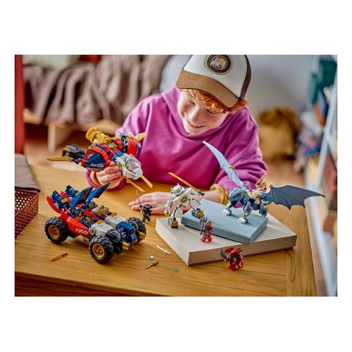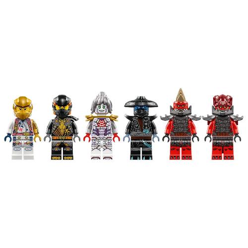 Questo set da gioco ninja include 6 minifigure, così i bambini potranno divertirsi a inscenare innumerevoli battaglie. I ninja Sora e Cole e il loro alleato Pixal sono dotati di fantastici armi accessorie ninja per affronta re il malvagio trio di Nokt, Guerriero dragoniano e Scout dragoniano, ognuno dei quali ha le proprie armi.