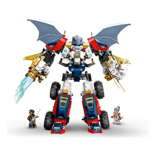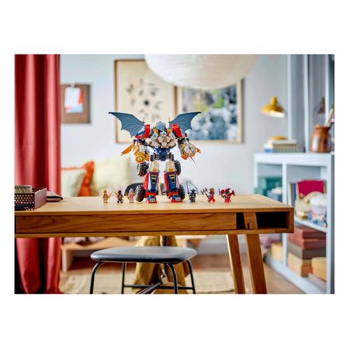 I bambini possono giocare con lo straordinario ed enorme Mech Combinatore, dotato di gambe, piedi, braccia, polsi, dita e testa snodabili, ali di drago, più una cabina di pilotaggio e 2 shooter. Possono quindi separarlo in 4 modelli più piccoli: un drago giocattolo con caratteristiche e ali snodabili; un jet giocattolo con motori mobili e cabina di pilotaggio girevole; un’auto giocattolo con 4 grandi ruote fuoristrada e 2 cabine di guida apribili, di cui una con blaster nascosti; e una action figure di Zane.