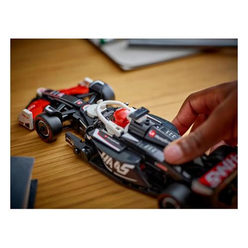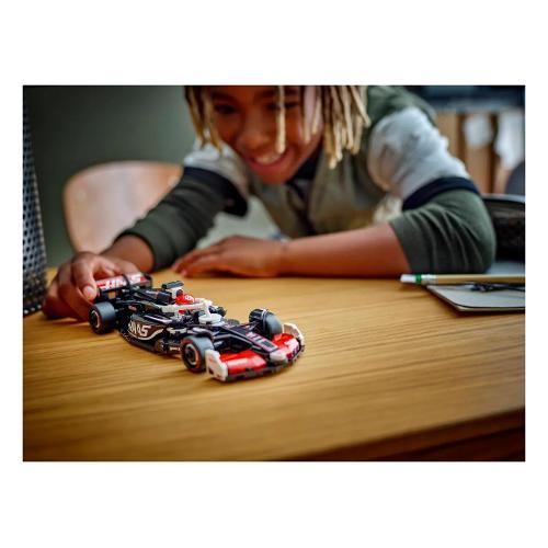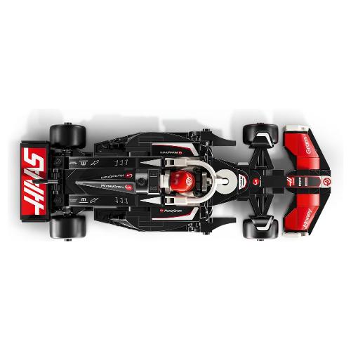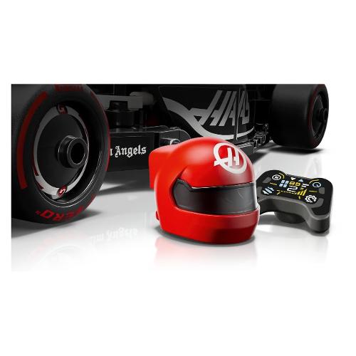 Il modello di auto di F1 è dotato di abitacolo che si apre sollevando la barra dell’halo, di ala posteriore, sospensioni a quadrilatero, adesivi degli sponsor e pneumatici posteriori più larghi con stampa “Pirelli”. L’auto da corsa di F1 contiene anche la minifigure del pilota con tuta del Team MoneyGram Haas F1 e casco con ala, posizionabile nell’abitacolo.