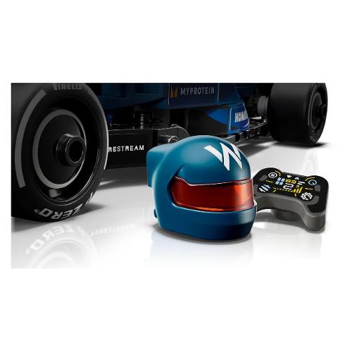 Il modello di auto di f1 è dotato di abitacolo che si apre sollevando la barra dell’halo, di ala posteriore, sospensioni a quadrilatero, adesivi degli sponsor e pneumatici posteriori più larghi con stampa “pirelli”. L’auto da corsa di f1 costruibile contiene anche la minifigure del pilota con tuta williams racing e casco con ala, posizionabile nell’abitacolo per tante avvincenti gare.