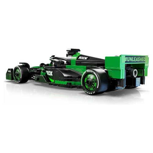 Il giocattolo di auto di f1 è dotato di abitacolo che si apre sollevando la barra dell’halo, di ala posteriore, sospensioni a quadrilatero, adesivi degli sponsor e pneumatici posteriori più larghi con stampa “pirelli”. L’auto da corsa costruibile contiene anche la minifigure del pilota con tuta team kick sauber f1 e casco con ala, posizionabile nell’abitacolo per tante avvincenti gare.