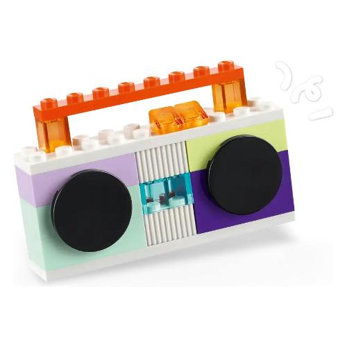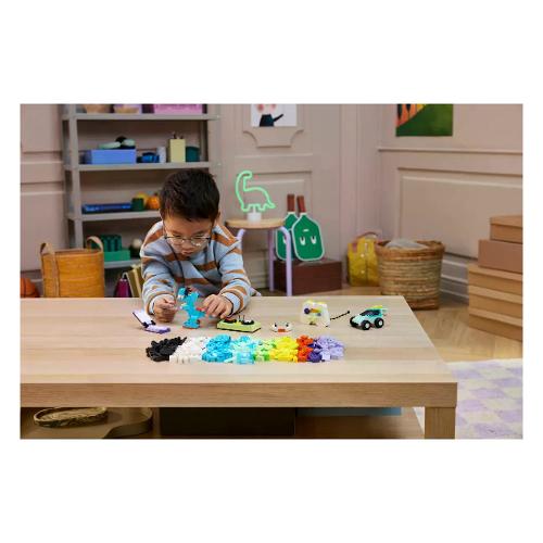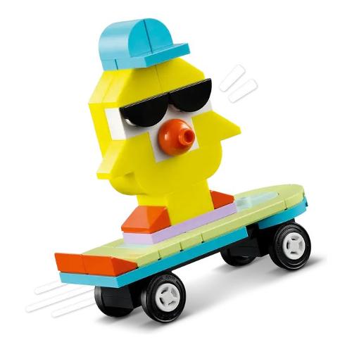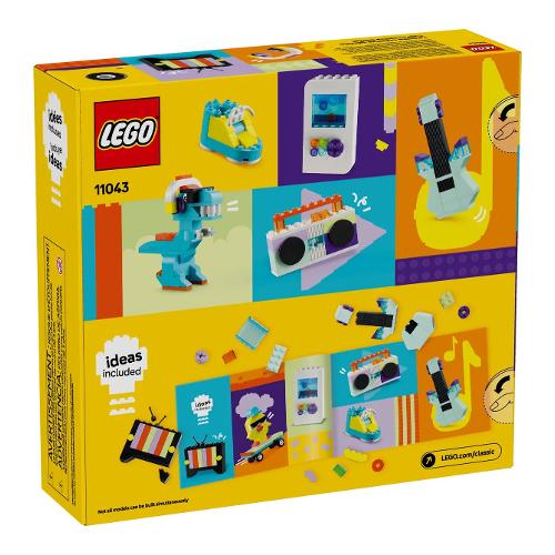 Tanti mattoncini colorati, oltre a occhi, ruote e cerniere, massimizzano la giocabilità di questo versatile set. I giocattoli costruibili includono un controller di gioco, un dinosauro con occhiali, un cellulare apribile e chiudibile, uno skateboard, un monster truck e un kit da dj con cuffie. I modelli possono essere combinati e personalizzati per un divertimento ancora maggiore, ad esempio mettendo le cuffie al dinosauro e il dinosauro sullo skateboard.