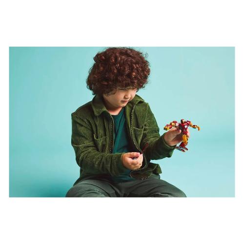 Questo set di gioco con mech lego marvel include 2 minifigure: iron man con un casco apribile e testa che mostra espressioni alternative, e ultron con un elemento raggio laser. Il robot costruibile è dotato di braccia, gambe e dita mobili e di uno shooter all’estremità del braccio destro. Il busto si apre per rivelare una cabina di pilotaggio dove può sedersi la minifigure di iron man. Per un ulteriore divertimento digitale, i costruttori possono ingrandire, ruotare i modelli in 3d e monitorare i loro progressi utilizzando la divertente e intuitiva app lego builder.