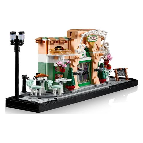 Un marciapiede in mattoncini con un classico lampione fa da sfondo al café fleur, con la sua facciata pittoresca, posti a sedere decorati, vasi di fiori pensili e doppie porte che si aprono per rivelare interni accoglienti con carta da parati regale e arredi in legno scuro. Ricco di dettagli e accessori intricati, come croissant, tazze, un giornale e un registratore di cassa, questo modello cattura l’essenza di un classico bistrot francese, mentre il suo profilo sottile e il retro piatto lo rendono perfetto per l’esposizione su scaffale.