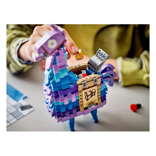 I giovani gamer si divertiranno per ore ad assemblare il “lama pignatta” di fortnite, conosciuto come lama delle scorte nel videogioco lego fortnite. Ricco di dettagli divertenti per ispirare il gioco creativo, è dotato di testa mobile, bocca apribile, sella e tanti fantastici elementi, tra cui un rampino, il succo succoso, un rubino grezzo, uno zaino, un portafortuna, una schiaffobomba e dinamite. Basati su entusiasmanti oggetti di LEGO Fortnite, questi elementi incoraggiano i bambini a ricreare i loro momenti di gioco preferiti lontani dallo schermo.