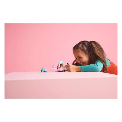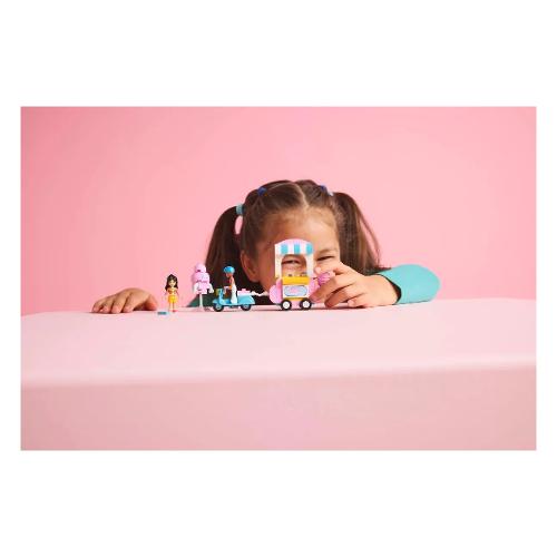 I bambini, le bambine e tutti i piccoli costruttori che amano il gioco creativo possono divertirsi a inventare le proprie storie con questo set. Racconta la storia di liann e jamila, che amano trascorrere il tempo insieme alla bancarella dello zucchero filato. Il veicolo lego traina il carrello su ruote, dotato di ciotola e condimenti per creare il delizioso zucchero filato. C’è anche un registratore di cassa ed elementi moneta in modo che i bambini possano inscenare diverse interazioni con i clienti.
