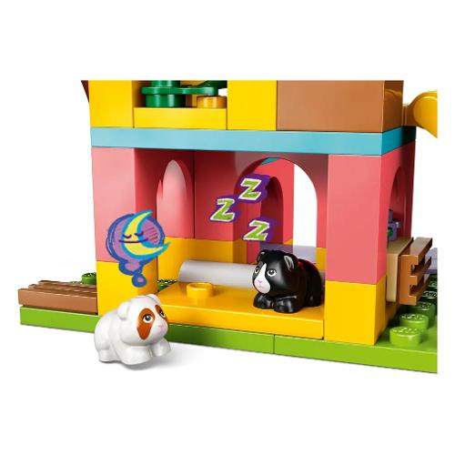Questo set da gioco con animali contiene tutto ciò di cui un proprietario responsabile ha bisogno: aree per il gioco e l’alimentazione, la toelettatura e il riposo. Porta i porcellini d’india a fare un giro sullo scivolo o mettili sulla giostra. Poi, quando è il momento di riposarsi, aiuta gli animali a sistemarsi nella zona notte. Il set contiene tanti accessori, tra cui una spazzola, semi di girasole, foglie e un gomitolo, ed è un regalo divertente per il piccolo amante degli animali nella tua vita.