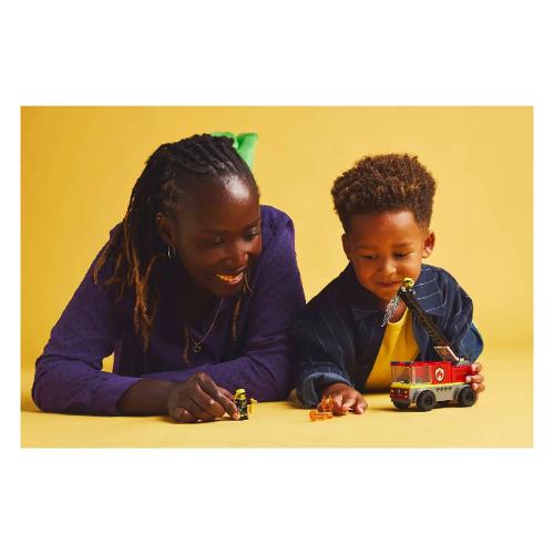 Unisciti al tuo eroe di tutti i giorni in avventure eroiche con il giocattolo autopompa con scala lego® city (60463). Progettato per i bambini dai 4 anni in su, questo modello classico di camion dei pompieri è dotato di cabina di guida e scala sollevabile con estintore giocattolo. Il set include anche 2 fiamme lego, un estintore portatile e 2 minifigure di pompiere per il gioco di ruolo e la narrazione di storie.