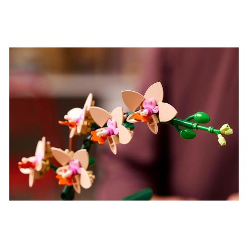 La replica realistica presenta 5 fiori di orchidea in fiore e alcuni in bocciolo, oltre a foglie per tanta autenticità in più. Contiene inoltre un vaso da fiori color pesca posizionato su uno splendido piedistallo effetto legno, facilitando l’esposizione del fiore lego da parte dei fioristi in erba che potranno così portare tanta tranquillità naturale in qualsiasi spazio di vita o di lavoro.