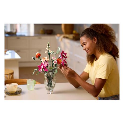 I fioristi in erba possono rilassarsi mentre costruiscono il bouquet, composto da 15 steli di fiori lego, tra cui margherite, fiordalisi, eucalipto, fiori di sambuco, rose, ranuncoli, orchidee cymbidium, una dalia waterlily e una campanula. Tutti gli steli sono regolabili, incoraggiando i costruttori a creare un bouquet su misura da utilizzare come decorazione floreale per la casa o l’ufficio. Per una maggiore personalizzazione, i fiori possono essere disposti con altri bouquet LEGO, disponibili separatamente, per creare un display floreale più grande e unico.