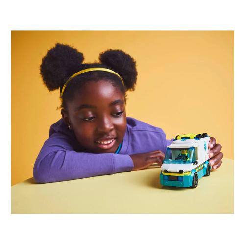 Missioni di soccorso ricche di azione ti attendono con l’ambulanza di emergenza lego® city (60451) giocattolo per i bambini dai 5 anni in su. I bambini possono ripiegare i pannelli laterali e aprire le porte posteriori per accedere facilmente allabarella e all’attrezzatura medica di bordo, tra cui una siringa giocattolo, una benda e una borsa medica. Il set include anche uno skateboard e una rampa, oltre alle minifigure dello skateboarder e del paramedico per divertenti giochi di ruolo e narrazione di storie.