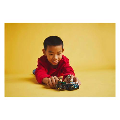 Questo set con macchinine da corsa LEGO include una guida alla costruzione stampata passo passo. I bambini possono anche vivere una divertente avventura di costruzione con l’app LEGO Builder, dove possono ingrandire, ruotare i modelli in 3D, monitorare i loro progressi mentre costruiscono ed esplorare e salvare altri set di gioco.