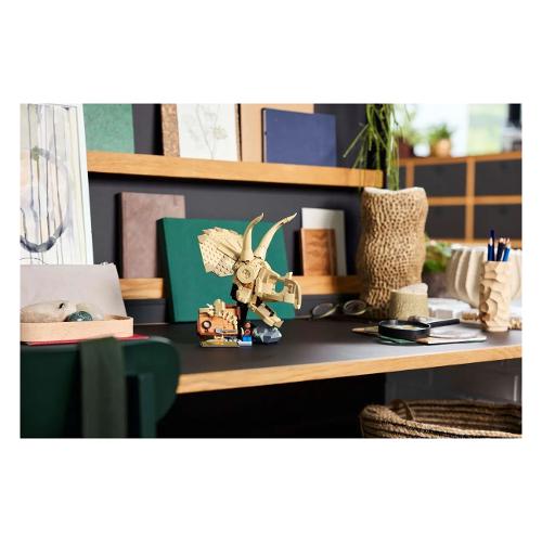 I giovani paleontologi dai 9 anni in su possono divertirsi con il gioco di fantasia di jurassic world collezionando fossili di dinosauro con questo kit costruibile fossili di dinosauro: teschio di triceratopo (76969) lego® jurassic world. Questo playset della serie espositiva fossili di dinosauro contiene un teschio di triceratopo con mascella apribile, un supporto con base di roccia, una piastra del sito di scavo con mini-fossili e attrezzi di scavo, una minifigure lego, una targa informativa e un pezzo di “ambra” con una zanzara racchiusa al suo interno.