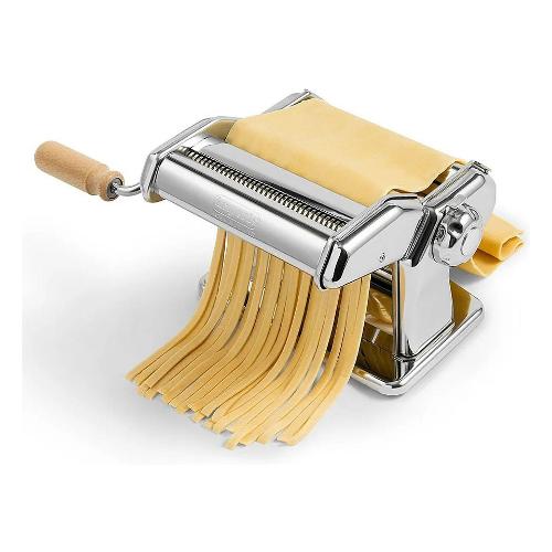 Con la macchina per pasta e la sua taglierina “Duplex”, realizzerete la sfoglia in sei diversi spessori e due tipi di pasta: tagliatelle e fettuccine.