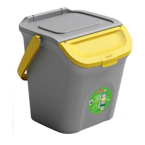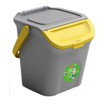 Pattumiera verticale per la raccolta dei rifiuti organici, con chiusura emertica in gomma, anello fermasacco, coperchio antipioggia e manico antirandagismo.