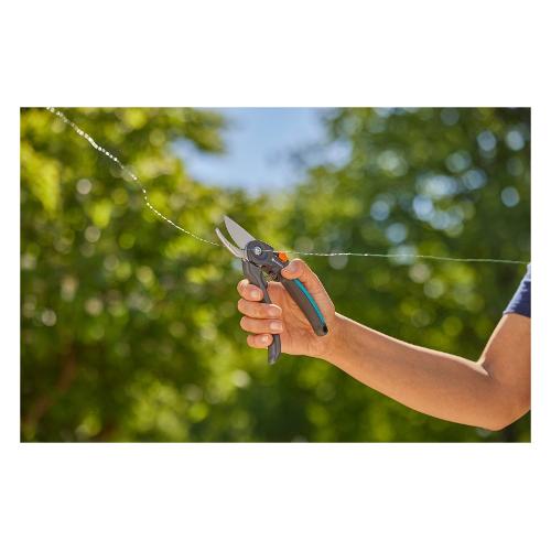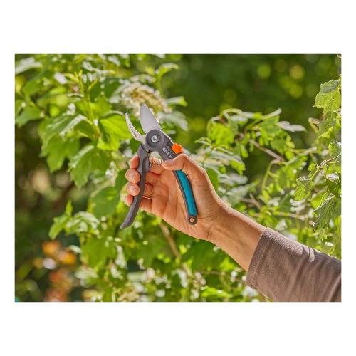 Le forbici da giardino premiumcut di gardena sono lo strumento ideale per tagliare in modo preciso e confortevole rami freschi, fiori e giovani germogli. Con un diametro di taglio massimo di 22 mm e impugnature ergonomiche con elementi morbidi, offre prestazioni eccellenti con il minimo sforzo. Le lame affilate con precisione in acciaio di alta qualità con rivestimento powercoating garantiscono tagli puliti, una facile pulizia e una lunga durata. Le forbici sono dotate di un sistema a doppia lama per il massimo comfort dell'utente, riducendo al minimo il rischio di schiacciamento e danneggiamento. I manici in plastica riciclata e le funzioni integrate, come l'estrattore di succo e il tagliafili, aumentano la praticità e il rispetto dell'ambiente.
