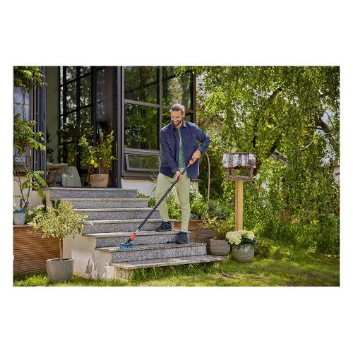 L’idrospazzola hard flex di GARDENA è l’attrezzo ideale per la pulizia versatile di ampie superfici. Basta collegare il manico Cleansystem al tubo da giardino e connettere la spazzola. Tutto qui. Ora non resta che iniziare. L’utilizzo è molto semplice e il risultato è davvero straordinario. L’idrospazzola hard flex è stata sviluppata per rimuovere lo sporco grossolano da superfici resistenti e robuste, come ad es. scale in pietra, cortili interni o pavimenti di terrazze in modo semplice e veloce. Grazie alle sue setole dure e all'apposito raschietto, con questa spazzola non sarà più un problema eliminare anche lo sporco più ostinato.