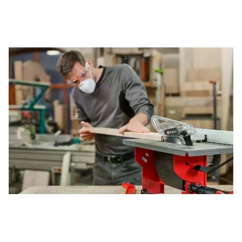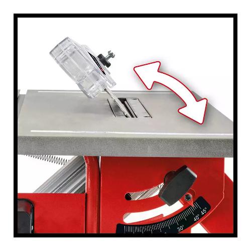 La sega circolare da banco einhell tc-ts 8 i è uno strumento compatto e potente per lavorare con legno, pannelli di fibre e molti altri materiali. Il motore a induzione a bassa manutenzione, silenzioso e allo stesso tempo potente fornisce la potenza necessaria, mentre la robusta struttura del telaio tubolare e il piano di lavoro in acciaio forniscono la stabilità necessaria. I tagli obliqui precisi sono possibili grazie alla lama inclinabile a sinistra (fino a 45°) e alla guida angolare (+/- 45°). La sega circolare da banco ha un'altezza di taglio di 45 mm ed è dotata di una battuta parallela con bloccaggio su entrambi i lati. Per un lavoro pulito, nell'alloggiamento è integrato un attacco di aspirazione dei trucioli. Per riporla con ordine è previsto un supporto per cavo integrato. La lama in metallo duro offre prestazioni di taglio potenti e precise. Lo spintore, necessario per lavorare in sicurezza, è sempre a portata di mano nel supporto appositamente previsto.