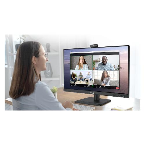 ASUS BE279QFK è un monitor Full HD da 27 pollici dotato di webcam Full HD (2MP) integrata, array di microfoni e altoparlanti stereo per videoconferenze e streaming live.
