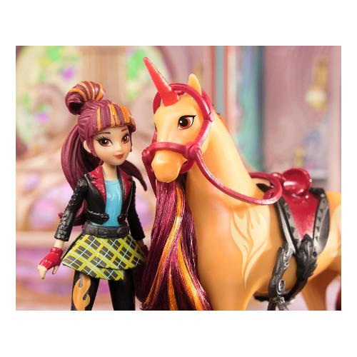Basato sulla popolare serie netflix e sui libri per bambini di grande successo, questo duo darà vita a innumerevoli avventure dell'immaginazione. Vivi il magico legame tra rider e unicorno. I dettagli fedeli ai personaggi del cartone e i 7 punti di articolazione rendono la bambola davvero realistica. La bambola può essere posizionata in groppa al suo unicorno. I dettagli includono i caratteristici simboli della sua magia. Mantieni coda e criniera sempre lisce e luminose con la spazzola. Anche gli accessori sella e briglia per la bambola sono rimovibili; espandi la tua collezione unicorn academy con bambole, unicorni, bamboline, animali di peluche e molto altro ancora. Include: 1 bambola, 1 unicorno, 1 sella rimovibile, 1 briglia rimovibile, 1 strumento per lo styling dei capelli
