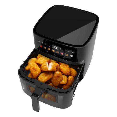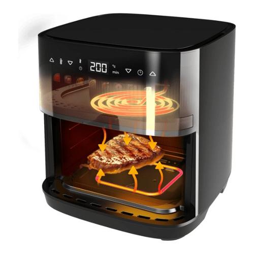 Friggitrice ad aria con doppia resistenza per una doratura perfetta e sapore di barbecue sulla carne, per piatti salutari.