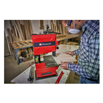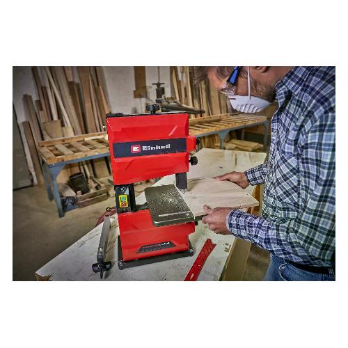 Il tc-sb 200/1 di einhell è una macchina di base ideale per gli appassionati di fai-da-te. Fissa ma flessibile, la sega a nastro si distingue per la sua adattabilità alle esigenze. Tagli dritti o curvi, a squadra o trasversali rispetto alla fibra: una sega a nastro offre un'ampia gamma di possibilità. Legno o materiali simili al legno possono essere tagliati in modo estremamente preciso grazie al potente motore da 250 watt. Una sega a nastro offre anche il vantaggio di un taglio stretto, proteggendo così il materiale e risparmiando energia. A tal fine, il tc-sb 200/1 garantisce una sicurezza efficace con un'operazione professionale. La regolazione dell'altezza non è solo utilizzata per tagli precisi ma, se adattata all'altezza di lavoro ideale dell'utente, contribuisce anche a un utilizzo sicuro e confortevole. Lo stabilizzatore della lama regolabile multiplo riduce le vibrazioni della lama, supportando così un uso affidabile e fornendo inoltre un taglio più fine. La protezione della lama è anch'essa regolabile in altezza e adattabile quindi allo spessore del materiale da tagliare. Il bastone di spinta incluso nella confezione è indispensabile per lavorare in sicurezza sulla sega a nastro. Il tavolo della sega è inclinabile in modo infinito, permettendo di realizzare anche tagli a squadra difficili. Il fermo di guida e il rullo di supporto assistono l'appasionato di fai-da-te nei tagli diritti e precisi.