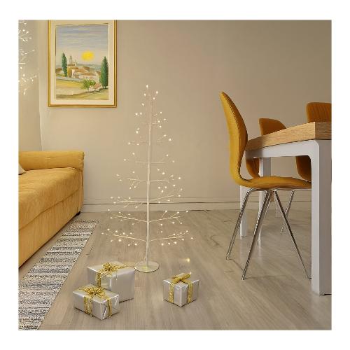 Albero conico 2d tiglio bianco h90 cm 78 microled bianco caldo ø1,5mm, long leg led con gambo di 3 cm, cavo metallo argento metal silver, gioco di luce automatico flashled diamond (led a luce fissa + led flash con lampeggio veloce), base in metallo (asportabile), rami modellabili con anima in metallo, trasformatore selv di sicurezza, ip44 uso esterno e interno, cavo di alimentazione bianco 4m