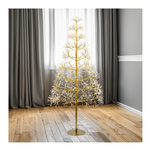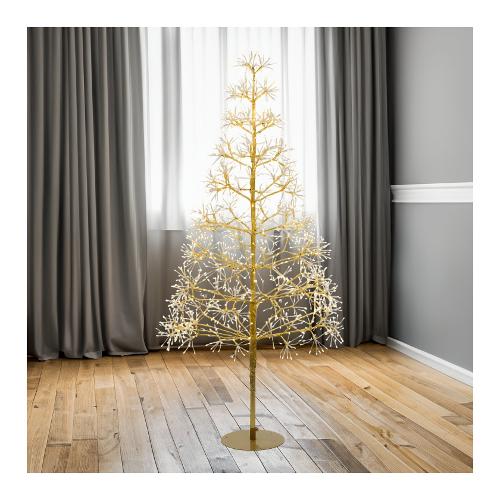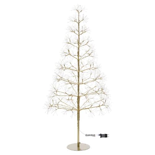 Albero conico rich champagne h150 cm 1500 microled bianco caldo e bianco ø1,5mm, serie rich ricco a ciuffi di long leg led con gambo di 3 cm, cavo argento metal silver, gioco luce flashled diamond (1350 led a luce fissa + 150 led flash lampeggio veloce), base in metallo (asportabile), rami modellabili con anima in metallo, trasformatore selv di sicurezza, ip44 uso esterno e interno, cavo di alimentazione trasp. 5m