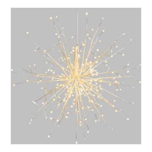 Ramo TWIGBall TIGLIO Bianco ø45cm 240 MicroLED BIANCO CALDO ø1,5mm, Long Leg Led con gambo di 3cm, Cavo Metallo Argento Metal Silver, gioco di luce automatico FlashLED Diamond (220 led a luce fissa + 20 led Flash con lampeggio veloce), uso Esterno e Interno, Anello nella Base per fissarlo o appenderlo, Cavo di Alimentazione Bianco, Dimensioni 4m+ø45cm