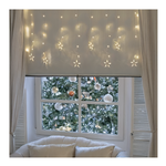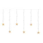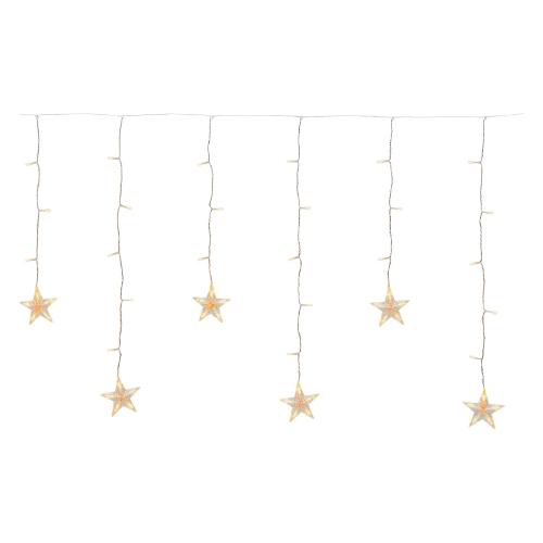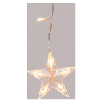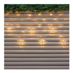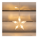 Ice star light 200xh70cm 10 stelle ø9cm 10 stringhe 90 led bianco caldo ø5mm reflex, cavo trasparente, memory controller luce fissa + 7 giochi luce + timer giornaliero 8 ore on (16 ore off) disinseribile integrato nel trasformatore selv di sicurezza, ip44 uso esterno e interno, con ganci per appenderla