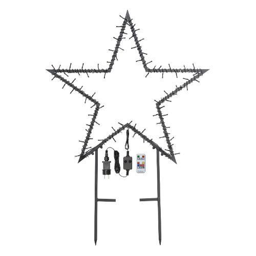 Stella ø75cm GMD WONDER Multiuso 100 LED SuperBright ø5mm, 8 COLORI x 6 giochi di luce (48 effetti luminosi inclusi Bianco Caldo e Luce Fissa) Controller 2 pulsanti Steady/Functions o Telecomando RF 13 Pulsanti, Timer 6 ore On (18 ore Off) disinseribile, Telaio metallo Nero con picchetti da giardino H45cm removibili, Multiuso per Giardino o da Appendere, Trasformatore, IP44 uso Esterno, Cavo Alim. Nero 4m, Dim. H45+ø75cm