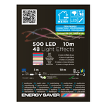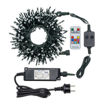 Catena nastro minicluster ø6cm wonder 10m 500 led superbright ø5mm, 8 colori x 6 giochi di luce (48 effetti luminosi inclusi bianco caldo e luce fissa) selezionabili tramite controller 2 pulsanti steady/functions o telecomando rf 13 pulsanti, timer on-off 6-18 ore disinseribile, prolungabile con cod. 63785 (max 1000 led / 20m), trasformatore a bassa tensione di sicurezza, ip44 uso esterno e interno,