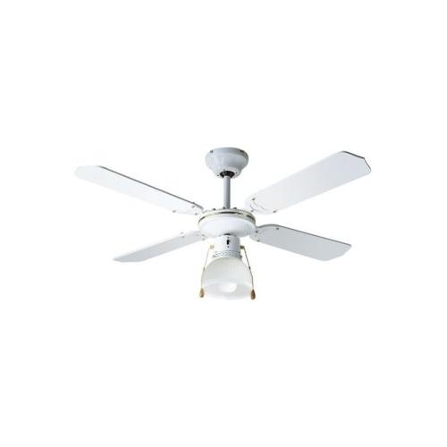 Ventilatore in metallo finitura bianco, 4 pale con kit luce in vetro 1xE27 max 60W