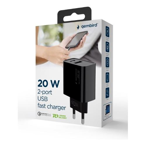 Caricabatterie USB Type-A, USB Type-C FAST CHARGER 20W Black TA UC PDQC20 01 BK