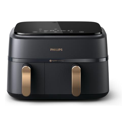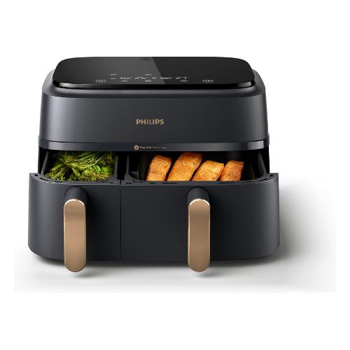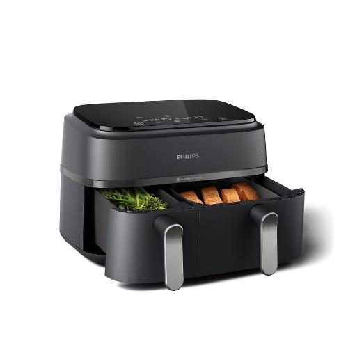 Airfryer con doppio cestello Philips Serie 3000 consente di programmare le preparazioni in modo da ottenere due piatti caldi e pronti contemporaneamente. Gusta una cucina sana e deliziosa: hai a disposizione un cestello grande per realizzare primi piatti in grandi quantità e uno piccolo per contorni o pasti per una persona
