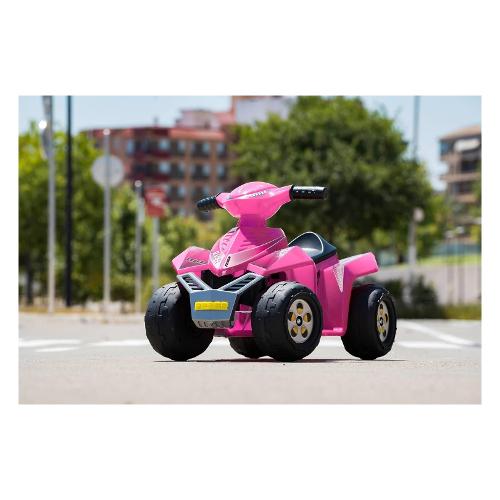 Quad per far divertire i più piccoli con un pizzico di velocità. Ha una funzione di marcia avanti e si attiva premendo l’acceleratore con il piede. Il quad raggiunge una velocità massima di 2 km/h. Grande stabilità per la sicurezza dei più piccoli. Dai 12 mesi di età. Batteria 6v 2 ah e caricabatterie inclusi.